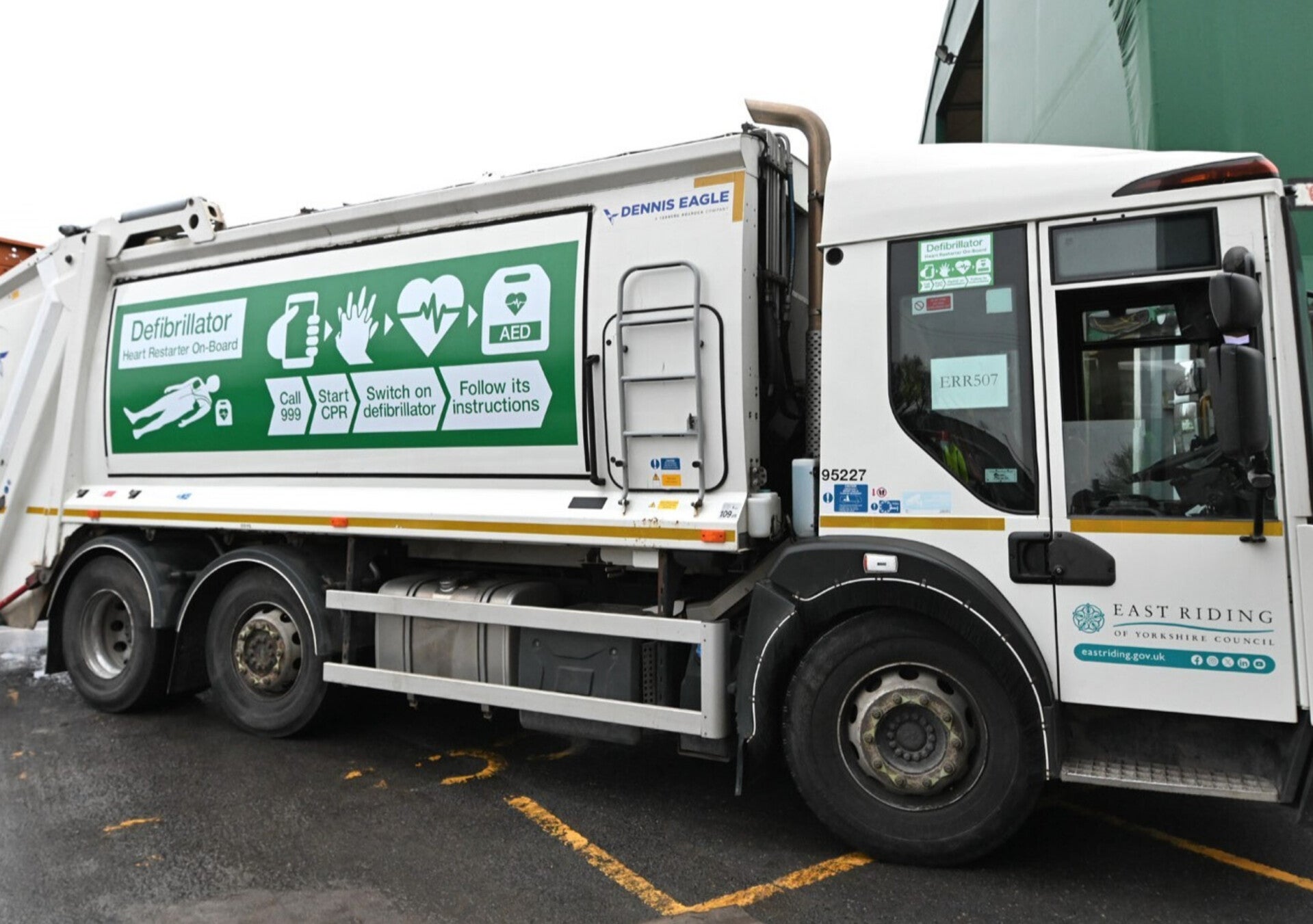 A fleet of East Riding bin lorries has been equipped with life‑saving defibrillators in what is believed to be the first scheme of its kind in the UK.