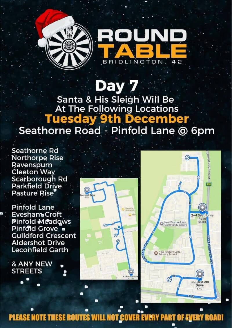 Santa & His Sleigh will be setting off from Seathorne Road - Pinfold Lane at 6pm and will be travelling to the following locations: